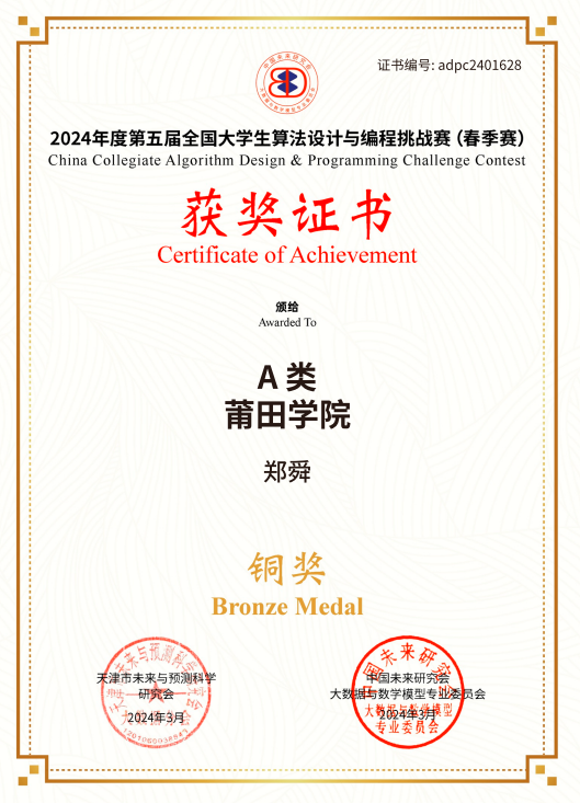 全国大学生算法设计与编程挑战赛铜奖