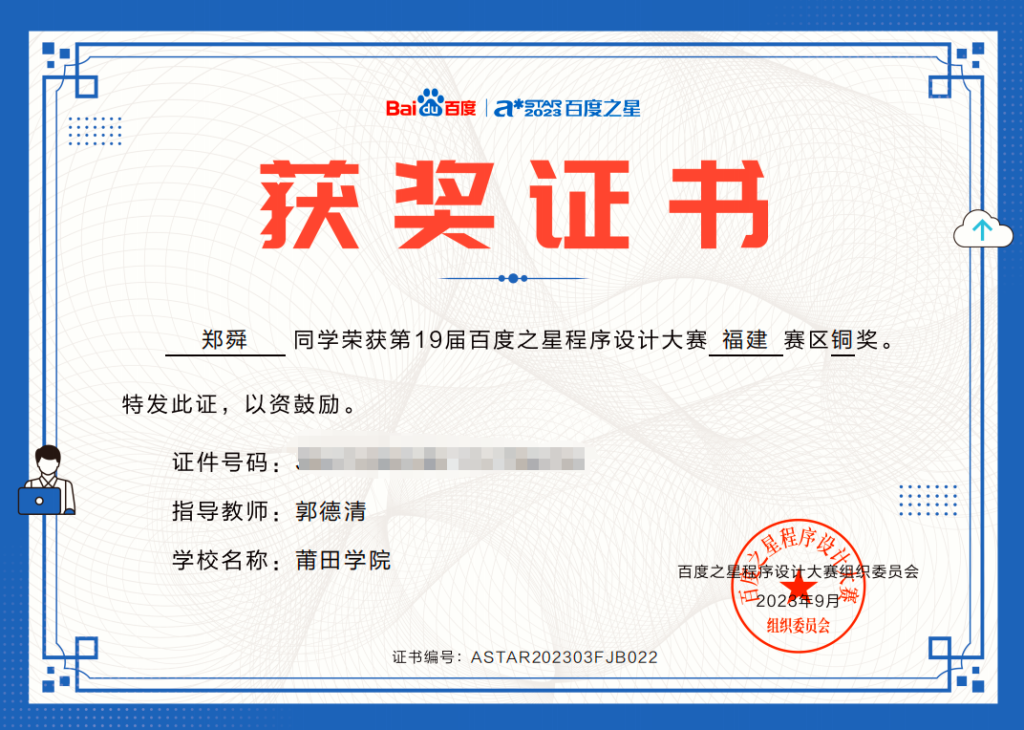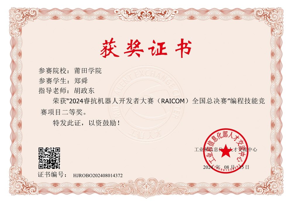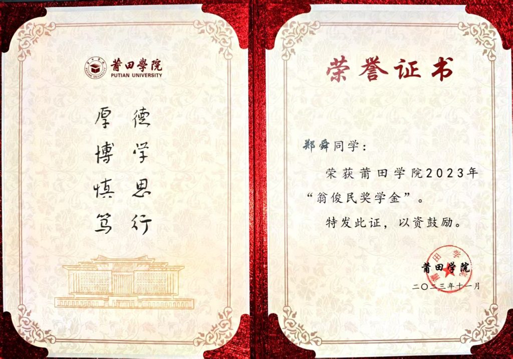 在校期间获得过十六项奖学金、七项表彰、十四项省级奖项、七项国家级奖项、一项职业资格证书。