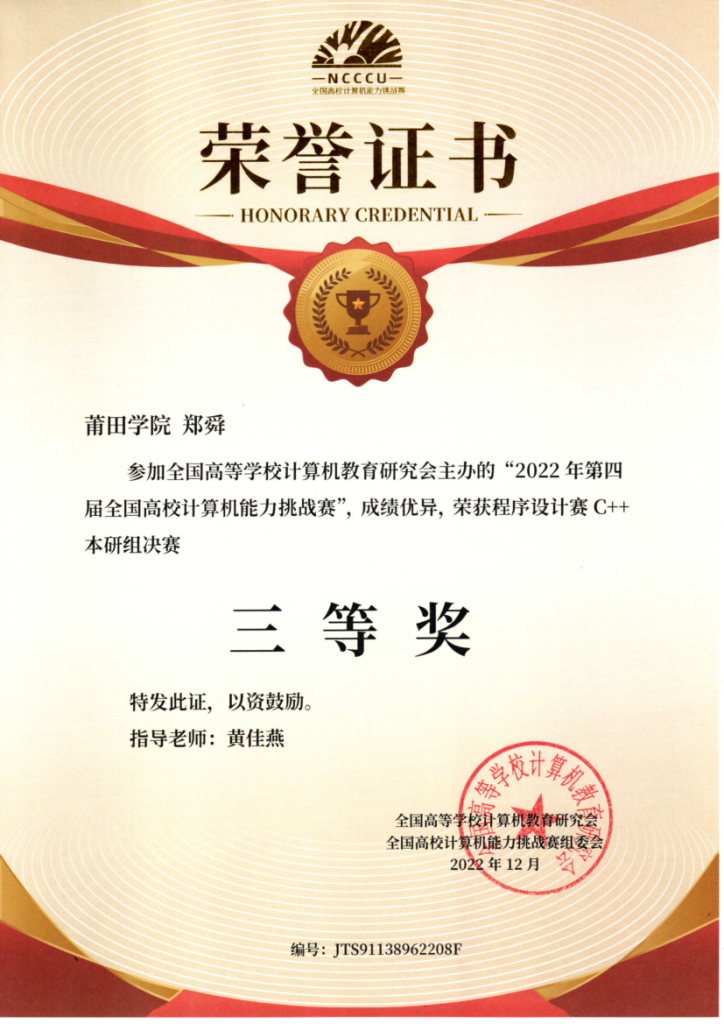 计算机能力挑战赛国家三等奖
